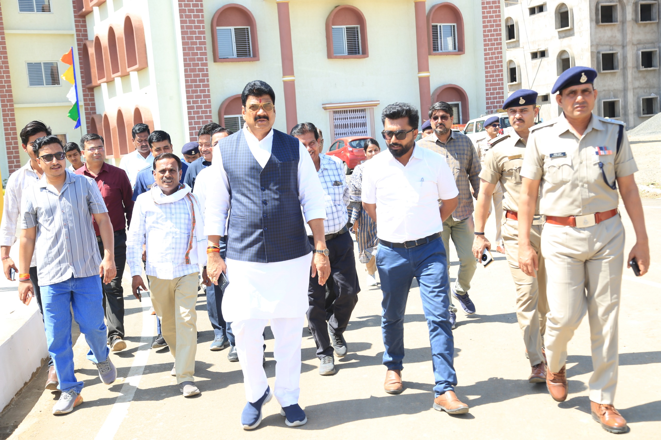 मंत्री श्री गोविंद सिंह राजपूत ने जिला पंचायत अध्यक्ष श्री हीरा सिंह राजपूत एवं अन्य अधिकारियों के साथ कार्यक्रम स्थल का निरीक्षण किया। इस दौरान उन्होंने हेलीपैड, मंच, बैठक व्यवस्था, पार्किंग, आवागमन मार्ग सहित अन्य व्यवस्थाओं को देखा और आवश्यक निर्देश दिए। बैठक व्यवस्था को लेकर विशेष निर्देश दिए ताकि लोगों को कोई भी असुविधा न हो। साथ ही लोगों के आने के लिए मुख्यद्वार देखते हुए उन्होंने हेलीपैड का निरीक्षण किया, पार्किंग व्यवस्था को लेकर अधिकारियों को निर्देशित किया कि किसी प्रकार की लोगों को असुविधा न हो इस प्रकार कि पार्किंग व्यवस्था की जाये। खासतौर से उद्घाटन सत्र में आने वाले विद्यार्थियों को किसी प्रकार की परेशानी न हो इसका विशेष ध्यान रखा जाये।