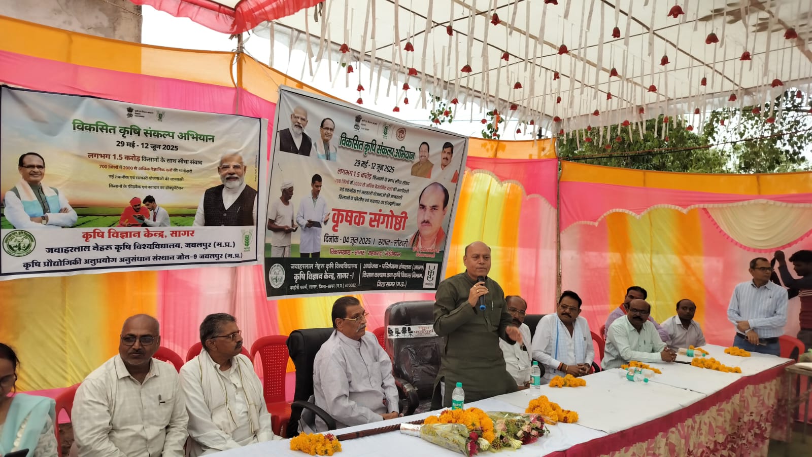 विकसित कृषि संकल्प अभियान के छठे दिन विकासखंड राहतगढ़ के ग्राम पंचायत नरयावली, काँचरी ऐवम लुहारी में सम्पन्न हुआ। ग्राम पंचायत लुहारी में लोकप्रिय क्षेत्रीय विधायक प्रदीप लारिया के मुख्य अतिथि के रूप में उपस्थिति थे। विशिष्ठ अतिथि के रूप में श्री गुलाब सिंह की उपस्थिति में सम्पन्न हुआ। कार्यक्रम में वैज्ञानिक डॉ देवेंद्र पयासी ने खरीफ फसलों में बीज उपचार के तरीके ऐवम महत्त्व, तरल पर्णीय उर्वरकों ऐवम कीटनाशक का ड्रोन के माध्यम से छिड़काव , बीज उपचार, विकल्पीय उर्वरक, समन्वित फसल प्रबंधन , मिट्टी नमूने संग्रहण ऐवम लाभ, काम लागत में अधिक उत्पादन के विभिन्न पहलू, बुबाई के तरीके ऐवम जलवायु परिवर्तन के दौर में फसल प्रबंधन की जानकारी किसानों को वैज्ञानिकों के माध्यम से दी गयी । इस अवसर पर उपसंचालक कृषि ने किसानों का आह्वान किया कि नवीन तकनीक जानकारियों को अपनाते हुए खेती में लागत को कम करने, विकल्पीय उर्वरकों का उपयोग हेतु प्रेरित किया। विधायक श्री लारिया ने किसानों को कृषि ऐवम उद्द्यानिकी विभाग की कल्याणकारी योजनाओं ऐवम सुविधाओं का लाभ अंतिम किसान तक पहुचाने के प्रयासों पर बल दिया साथ ही नरबाई प्रबंधन हरतु किसानों को आ रही तकनीकी दिक्कतों को दूर करने के उपायों ऐवम आवश्यक मशीनरी की सुविधाओं को किसानों के कस्टम हायरिंग के माध्यम से या अनुदान सहित उपलब्ध कराने हेतु सहायक कृषि यंत्री श्री कुजूर को निर्देशित कर जिले में सुविधाओं को बढ़ाने पर जोर दिया जिससे समय पर किसानों को समय पर मशीनरी उपलब्ध हो सके।कार्यक्रम के विशिष्ट अतिथि श्री गुलाब सिंह राजपूत ने समय पर खरीफ फसलों के बीजो की उपलब्धता ऐवम विकल्पीय उर्वरकों के उपयोग हेतु किसानों को जानकारी उपलब्ध कराने हेतु सुझाव दिये। कार्यक्रम में प्रगतिशील किसान ऐवम जनप्रतिनिधियों श्री अशोक सिंह, बलदेव सिंह, रामगोपाल ठाकुर, मंडल अध्यक्ष सोहन सिंह, चाली राजा सरपंच लुहारी का मार्गदर्शन ऐवम सहयोग प्राप्त हुआ। इस अवसर पर कृषि विज्ञान केंद्र सागर के प्रमुख वैज्ञानिक एवं प्रभारी, डॉ के एस यादव, डॉ ममता सिंह, अनुविभागीय अधिकारी कृषि अनिल राय, परियोजना संचालक आत्मा प्रजापति जी,सहायक यंत्री ए पी कुजूर, उद्यानिकी से श्री मलारया जी, मत्स्य विभाग से बी आर पटेल, कृषि विस्तार अधिकारी अम्बुजा सिंह ने अपने अनुभव साझा किये एवं सहभागिता दी। कार्यक्रम का संचालन बी टी एम आत्मा शैलेश त्रिपाठी ने किया एवं आभार व्यक्त परियोजना संचालक आत्मा ने किया।