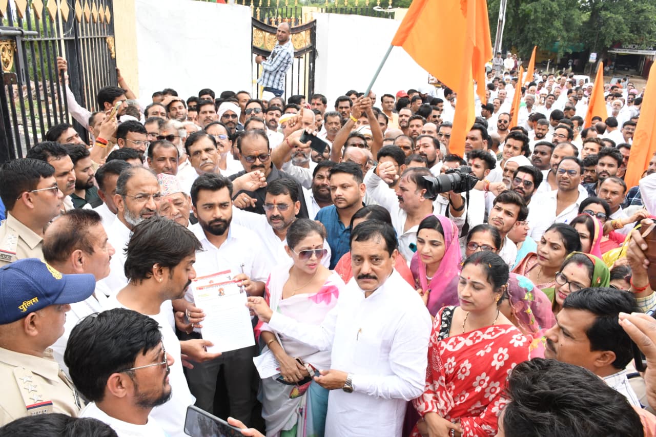 सागर। क्षत्रिय महासभा जिला सागर के तत्वावधान में जिले भर से आए क्षत्रिय समाज के लोगों ने खेल परिसर से रैली निकाल कर जिला कलेक्ट्रेट पहुंच कर दो ज्ञापन सौंपे। एक ज्ञापन मुख्यमंत्री के नाम था जिसमें विगत 25 सितंबर को जैसीनगर की आमसभा में मंत्री श्री गोविन्द सिंह राजपूत द्वारा मुख्यमंत्री डा मोहन यादव से कराई गई जैसीनगर का नाम बदलने की घोषणा निरस्त करने की मांग की गई , दूसरे ज्ञापन में सागर में स्वीकृत वीर शिरोमणि महाराणा प्रताप की प्रतिमा स्थापना डेढ़ माह के भीतर कराने की मांग की गई।